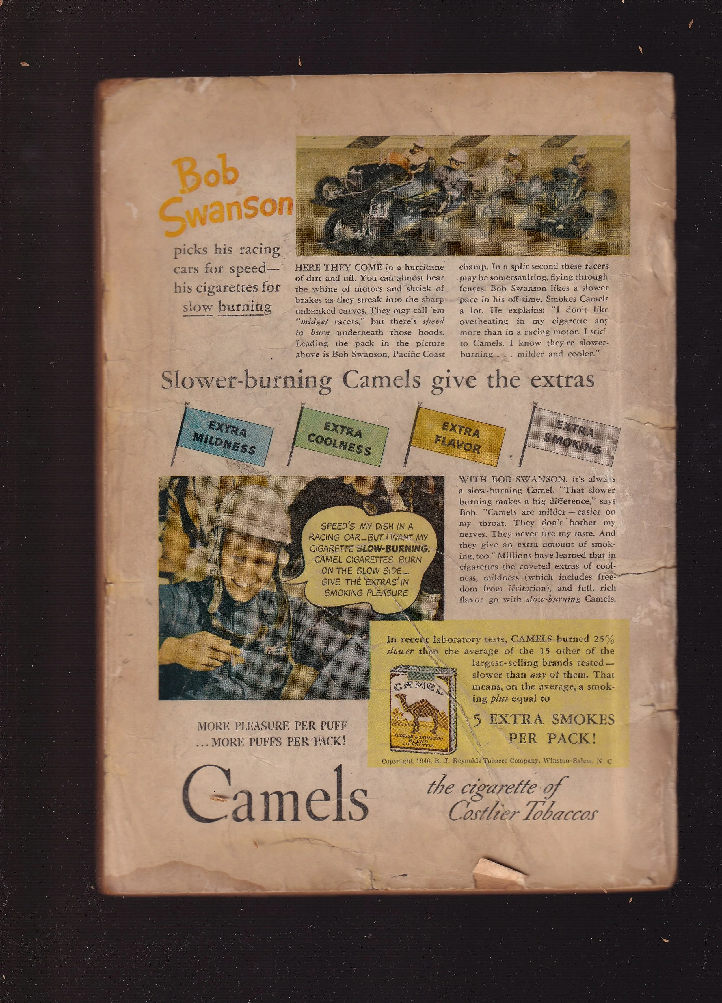 Excessive glue on creases and tears.
